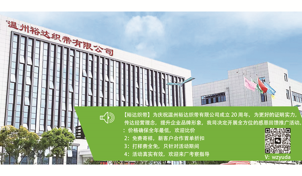 經(jīng)驗優(yōu)勢 裕達(dá)從事織帶產(chǎn)品已有20多年的歷史。從一個小型的家庭作坊開始,發(fā)展成為一家擁有200多名員工的大型企業(yè)。